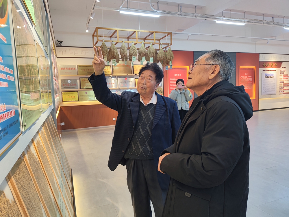 盘锦北方农业董事长、原全国人大代表、全国政协委员、辽宁省政协常委、国家级有突出贡献专家、全国农业推广先进个人、著名育种家许雷亲自接待,并向朱思浩院士介绍了他从事水、旱稻育种研究50余年的艰辛过程以及他培育的百余个水稻、旱稻、特种稻新品种(系)。特别是“‘红海滩1号’在高产、优质、多抗和适应性方面都表现出色,分蘖率强,成穗率和千粒重高,外观品质好,加工品质高,营养丰富,口感醇香。”许雷老爷子自豪地介绍道,2019年,“红海滩1号”荣获“国家优质米食味金奖”,进一步证明了其卓越的品质。此外,“红海滩1号”还具有抗病、耐寒、耐旱、耐盐碱等特性,适应性强,可在各种类型土壤种植,为大面积推广提供了有利条件。